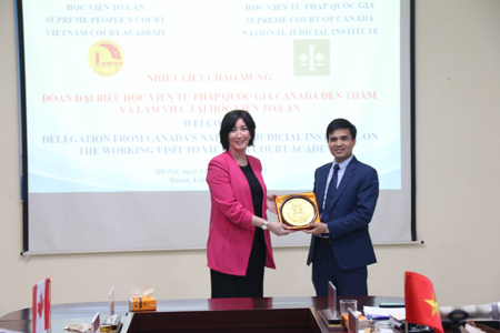 Đoàn Đại biểu Học viện Tư pháp quốc gia Canada đến thăm và làm việc tại Học viện Tòa án